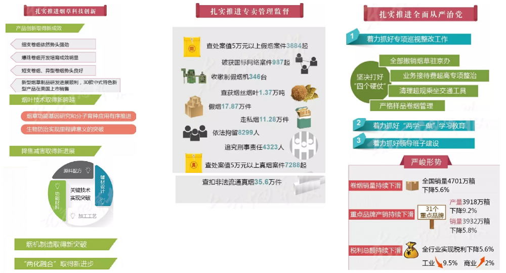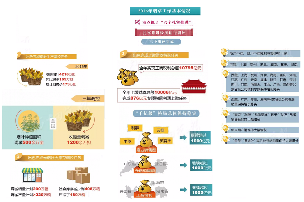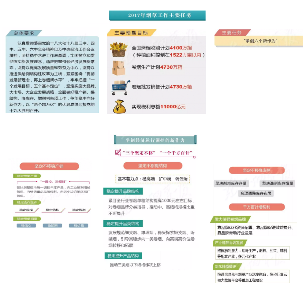 2017年全國煙草工作會(huì)議在北京召開,國家局局長凌成興在會(huì)上作了題為《堅(jiān)持穩(wěn)中求進(jìn)總基調(diào) 爭創(chuàng)穩(wěn)中向好新作為以“兩個(gè)超萬億”優(yōu)異成績迎接黨的十九大勝利召開》的報(bào)告。