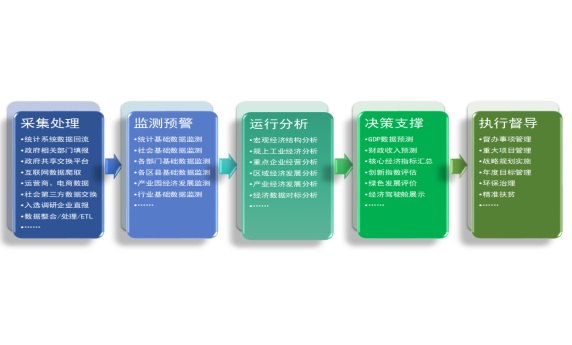 面向地方政府經(jīng)濟(jì)管理工作的現(xiàn)實(shí)需要,實(shí)現(xiàn)了政府各部門經(jīng)濟(jì)數(shù)據(jù)的全生命周期管理。整合政府各經(jīng)濟(jì)部門數(shù)據(jù)資源,并對(duì)實(shí)時(shí)、交互、離散化和非結(jié)構(gòu)的海量數(shù)據(jù)進(jìn)行融合處理,建立可持續(xù)優(yōu)化的各類監(jiān)測(cè)分析模型、涵蓋“企業(yè)微觀經(jīng)濟(jì)”、“產(chǎn)業(yè)中觀經(jīng)濟(jì)”和“空間中觀經(jīng)濟(jì)”以及“區(qū)域宏觀經(jīng)濟(jì)”多個(gè)層面,覆蓋政府經(jīng)濟(jì)管理過(guò)程中數(shù)據(jù)采集、監(jiān)測(cè)預(yù)警、運(yùn)行分析、決策支撐和執(zhí)行督導(dǎo)多個(gè)應(yīng)用場(chǎng)景,實(shí)現(xiàn)對(duì)地方高質(zhì)量發(fā)展、產(chǎn)業(yè)布局優(yōu)化的信息支撐價(jià)值,進(jìn)而形成引領(lǐng)地方經(jīng)濟(jì)發(fā)展的新引擎。
